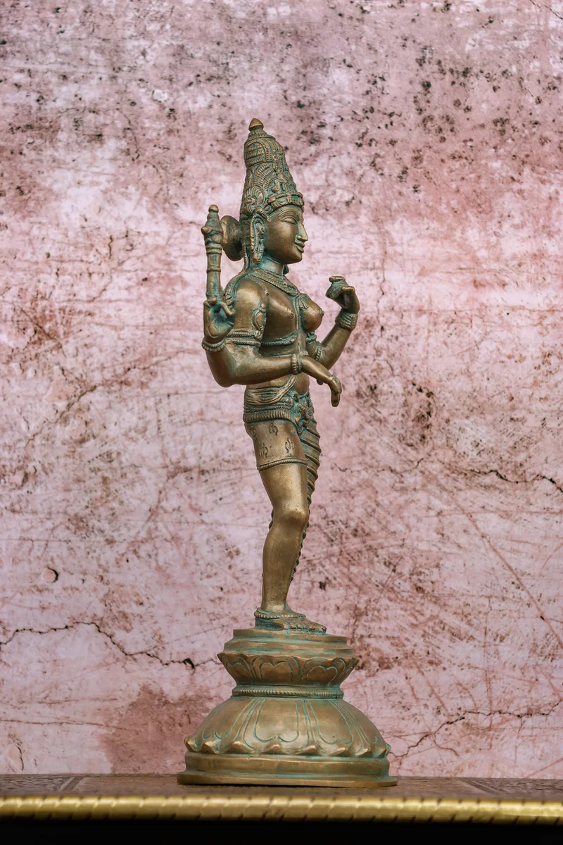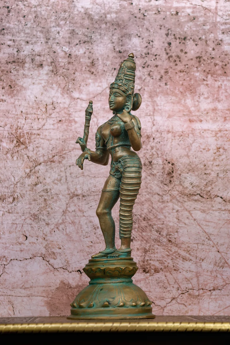 12″ Ardhanareeswarar | Handcrafted Panchaloha | Green Patina Finish