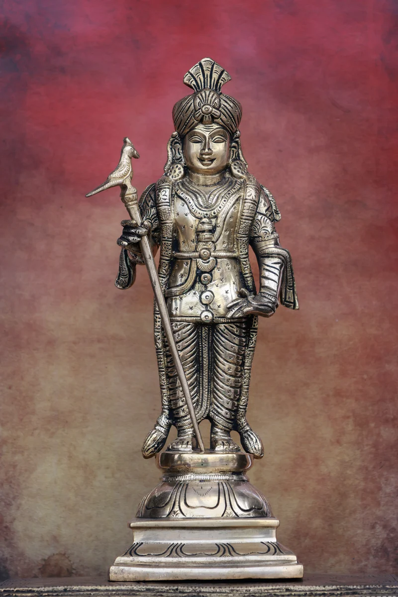 12″ Raja Alangara Murugan (Palani) | Handcrafted Brass | Polish