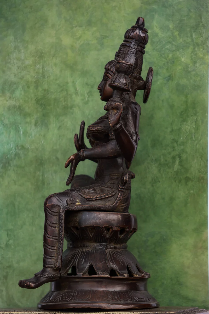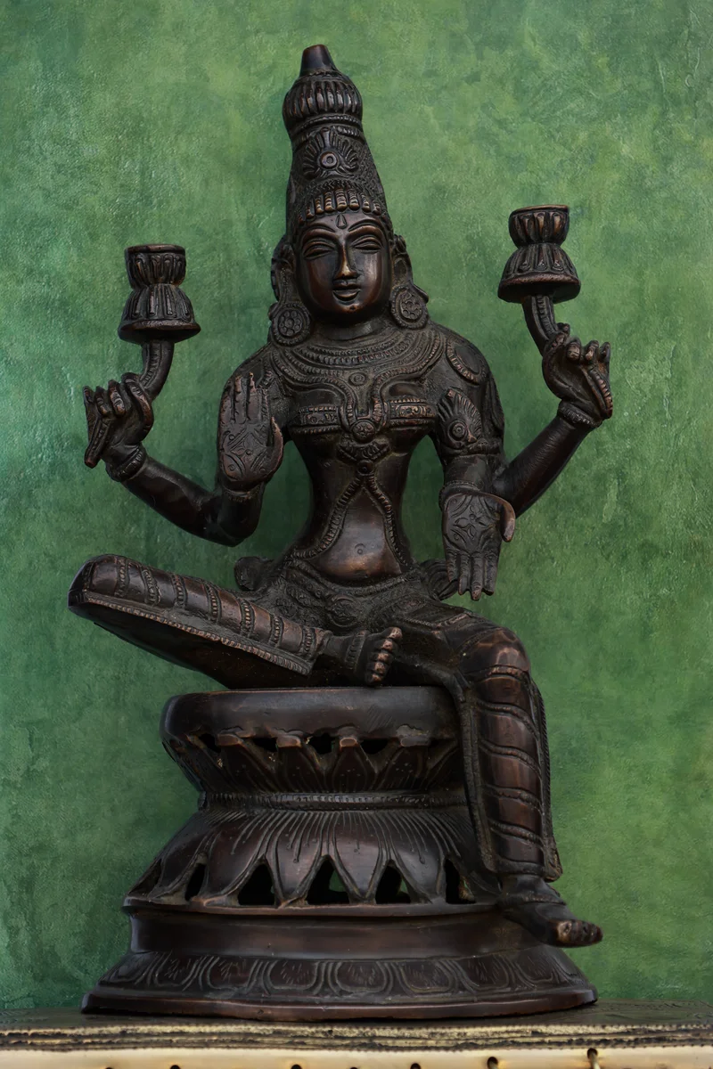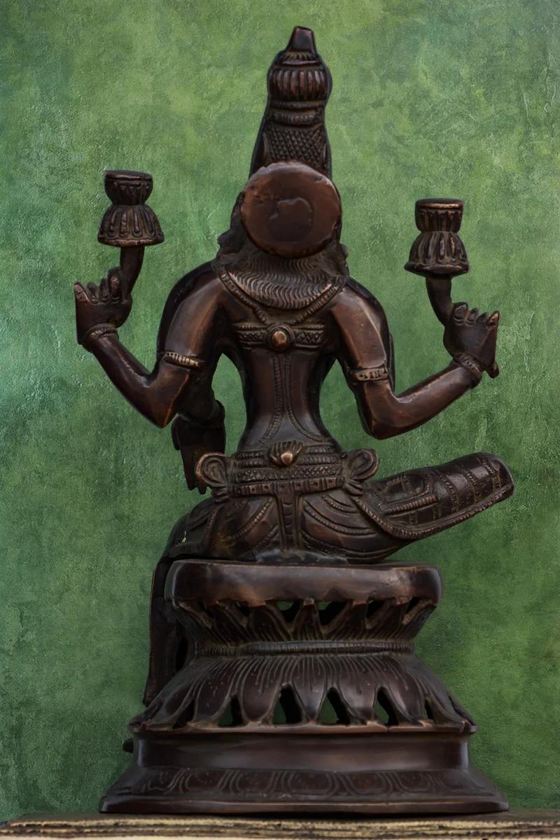 12″ Sitting Lakshmi (Chola Style) | Handcrafted Brass | Brown Finish