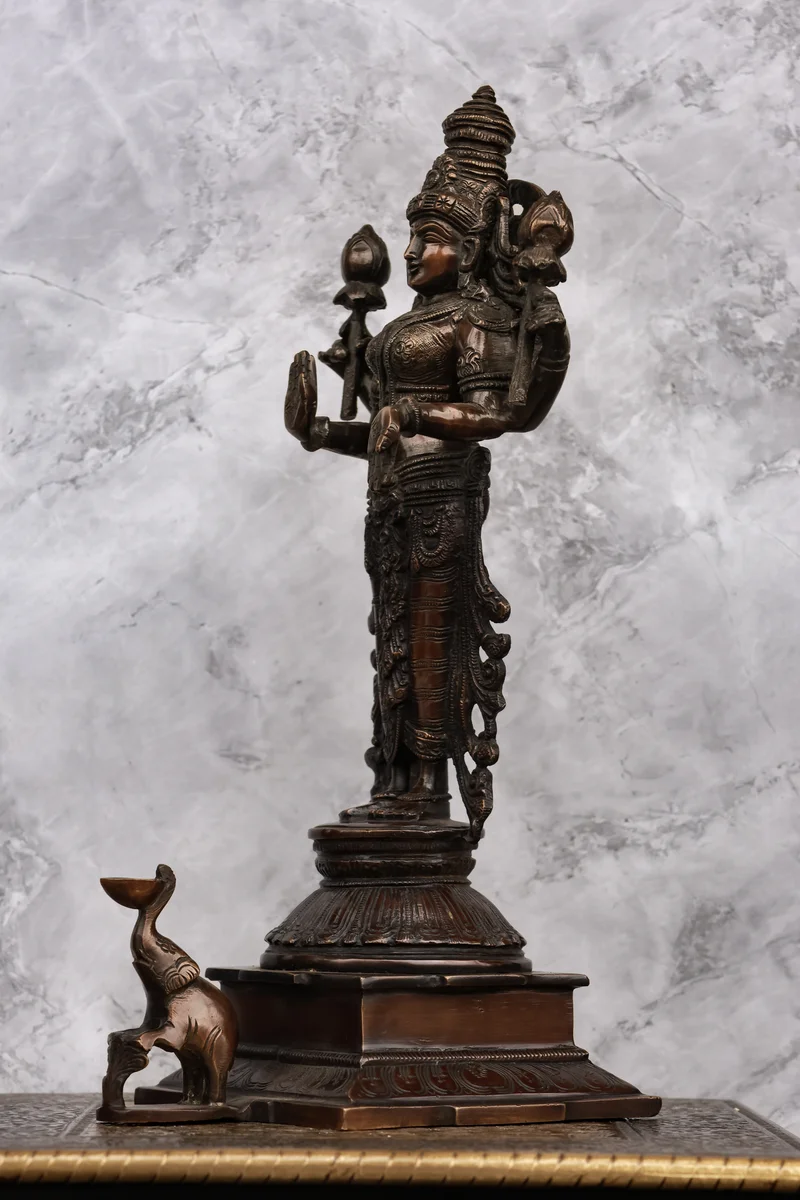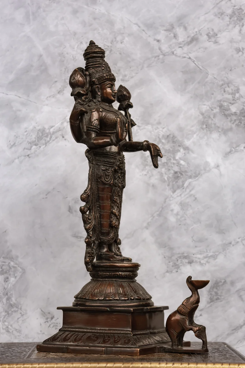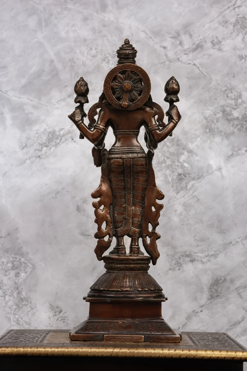 14″ Divine Mahalakshmi Standing | Handcrafted Brass | Antique Brown Finish