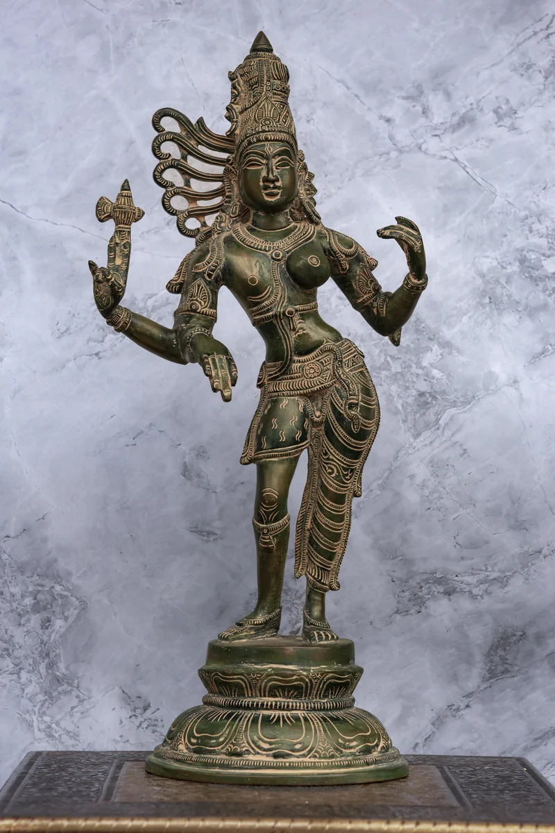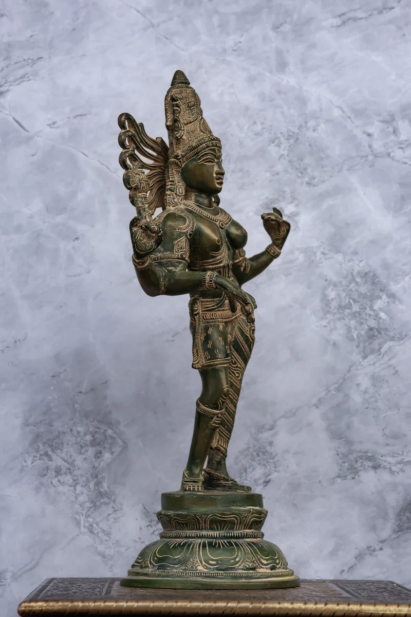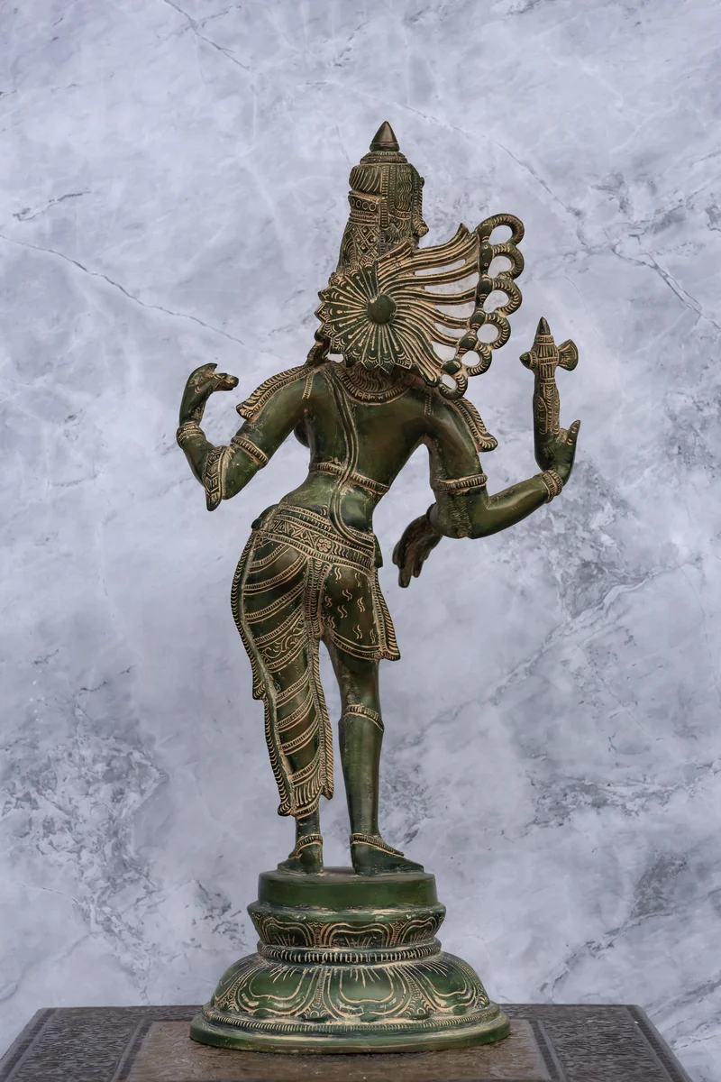16″ Divine Ardhanareeswarar | Handcrafted Brass | Antique Green Patina