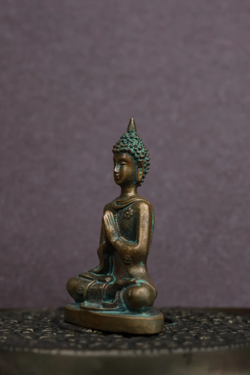 3″ Buddha in Namaskara Mudra | Handcrafted Panchaloha | Green Patina Finish