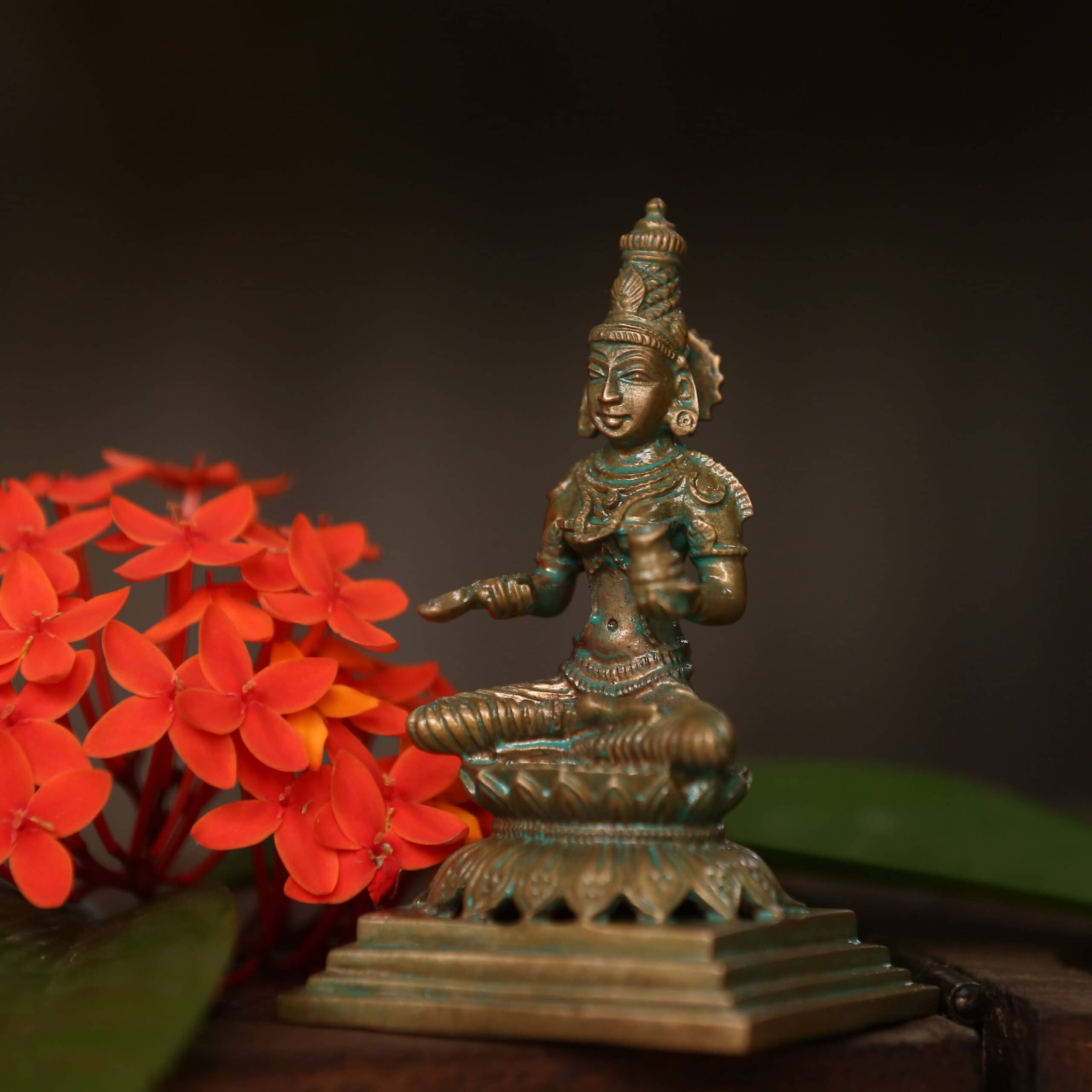 4″ Graceful Annapoorani Idol | Handcrafted Panchaloha | Green Patina
