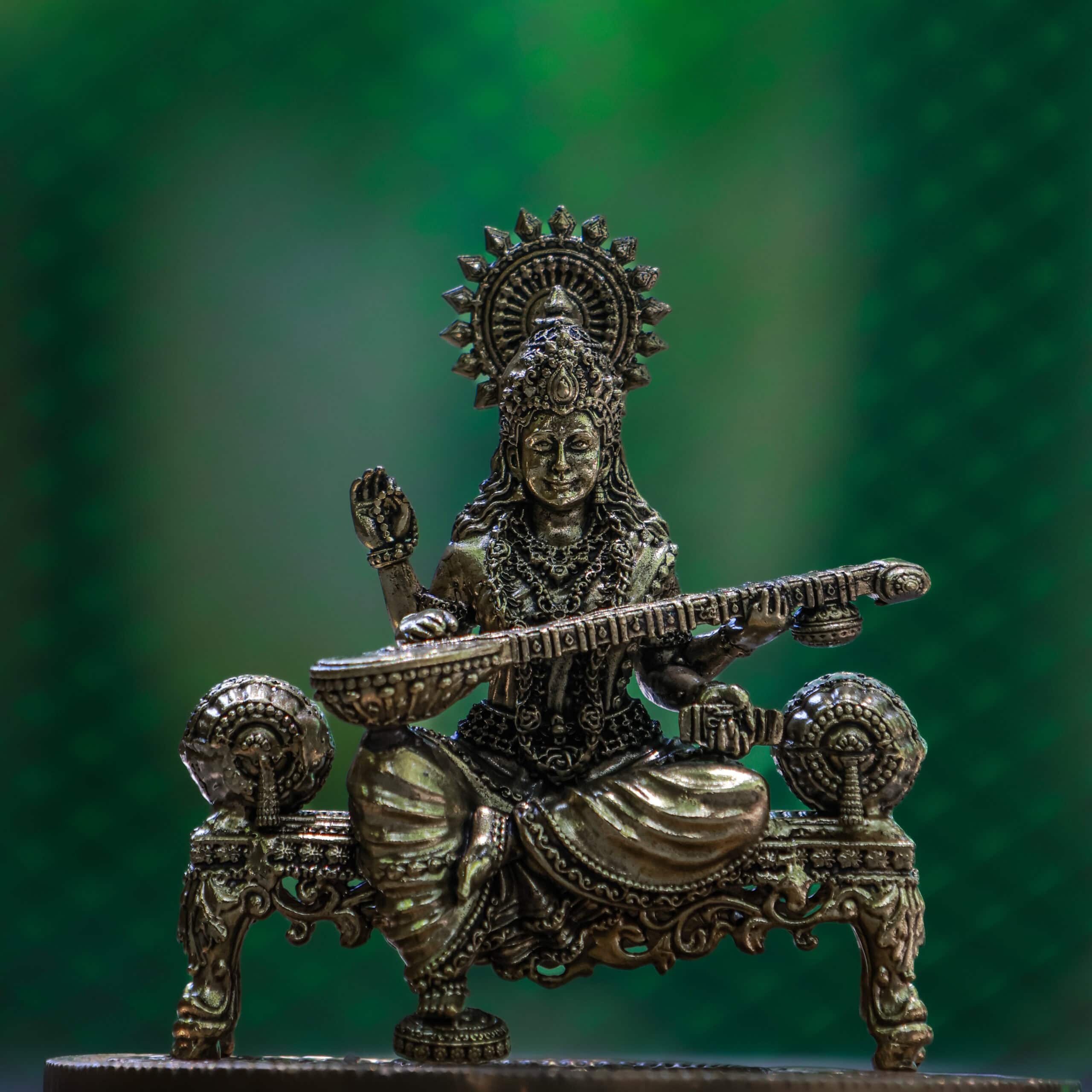4″ Royal Sofa Saraswati with Veena | Super-Fine Handcrafted Brass