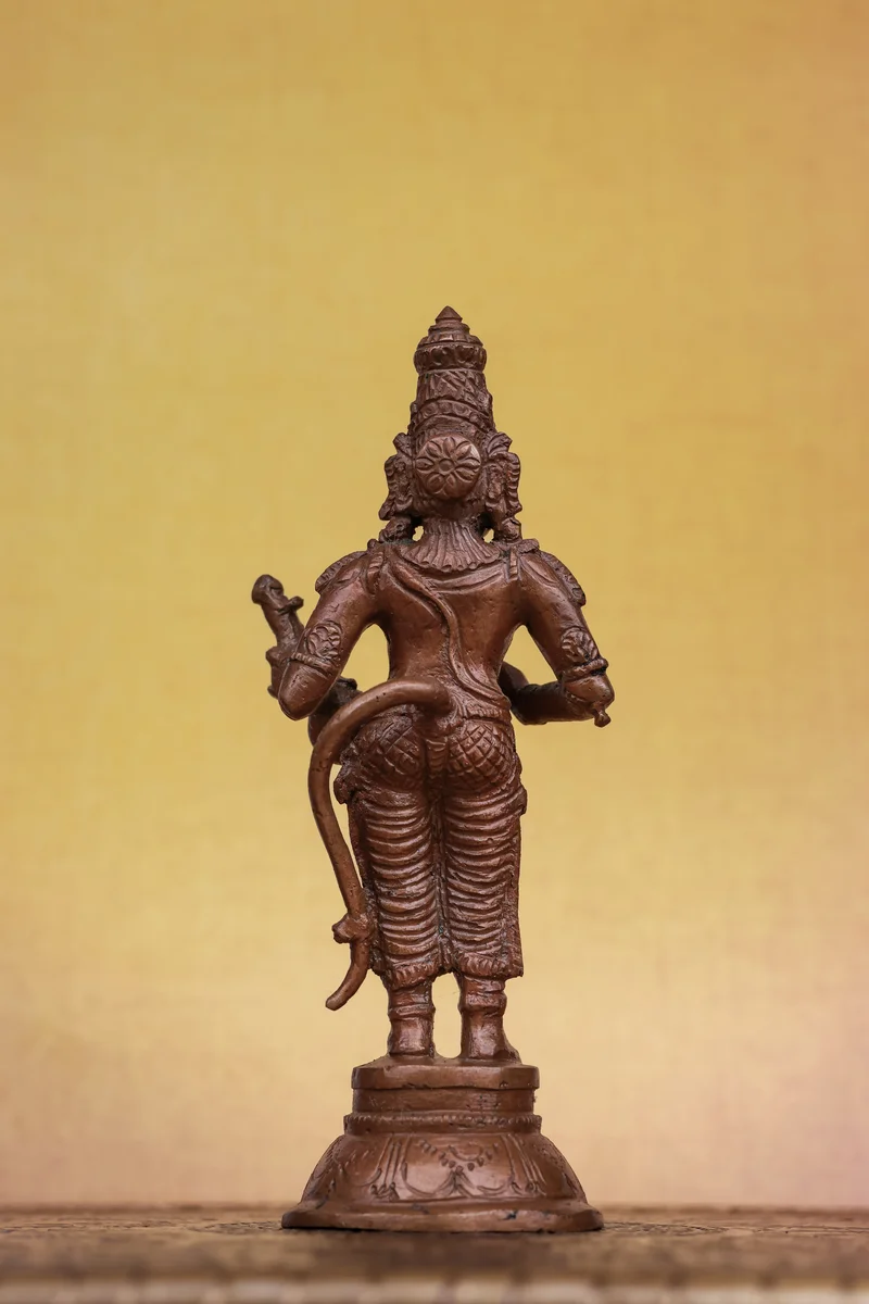 A unique depiction of devotion and divine music, this Hanuman statue features the rare Veena Hanuman form—symbolising wisdom, humility, and unwavering bhakti. Handcrafted in solid panchaloha with a warm wood patina, he stands gracefully holding a veena, bringing a sense of calm strength and auspicious energy to any space. Perfect for pooja rooms, work desks, meditation corners, and meaningful gifting.