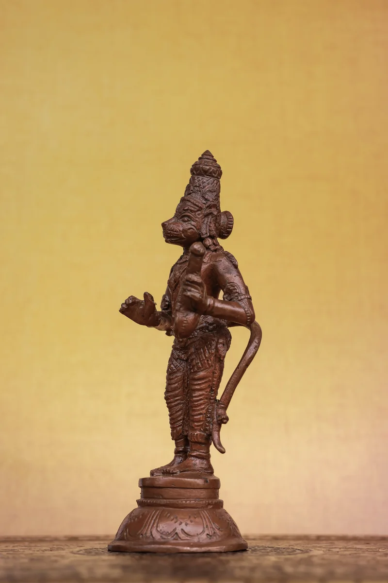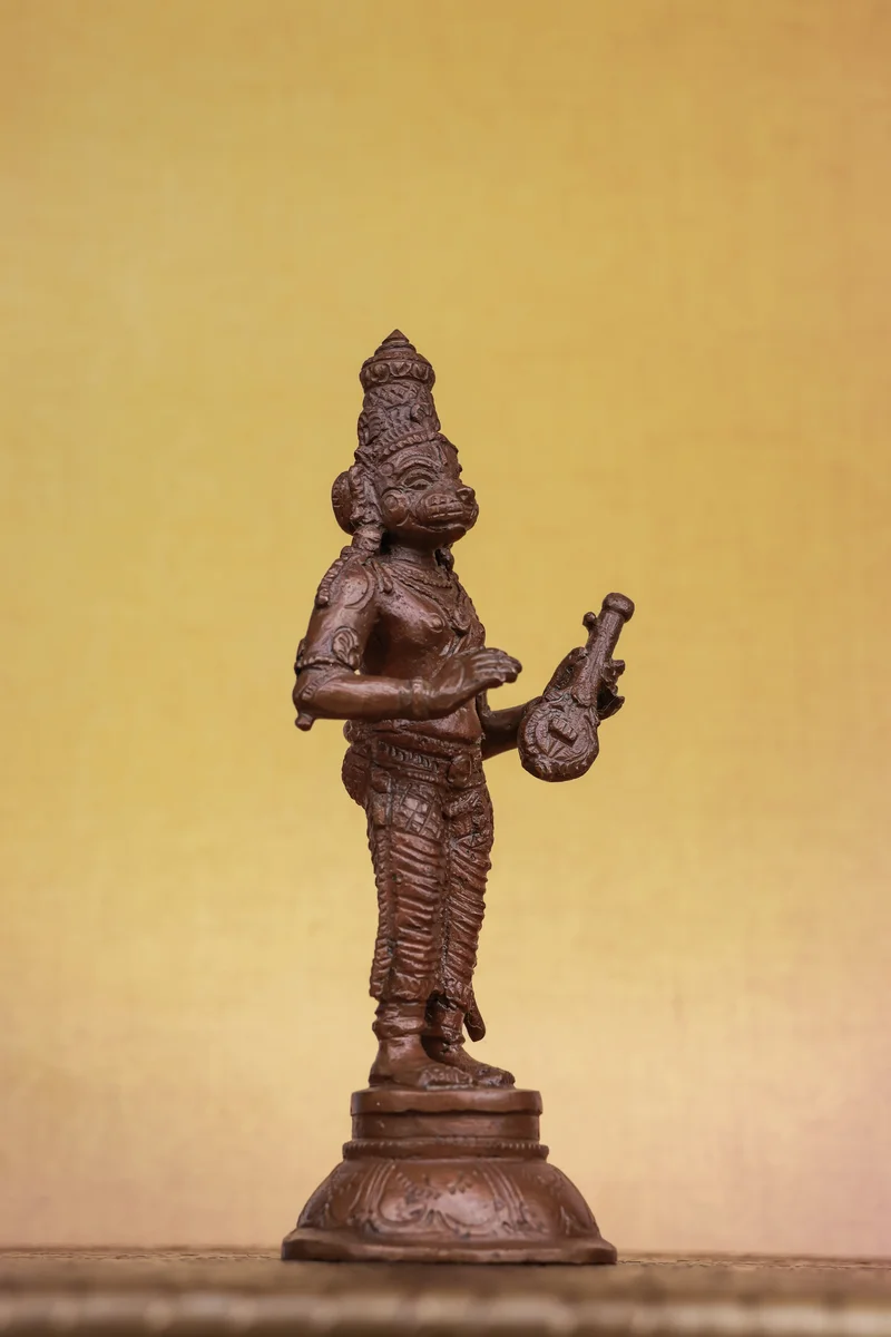 6″ Hanuman with Veena (Rare Form) | Handcrafted Panchaloha | Wood Patina