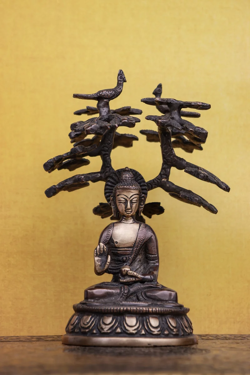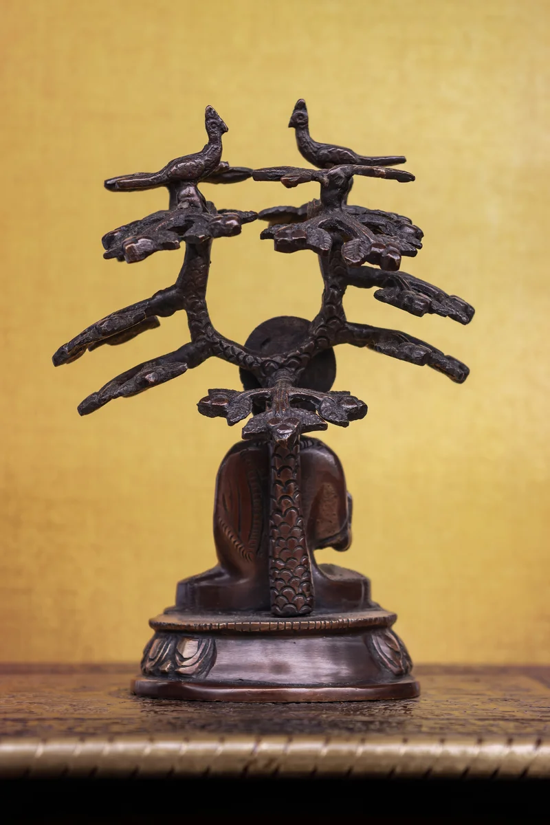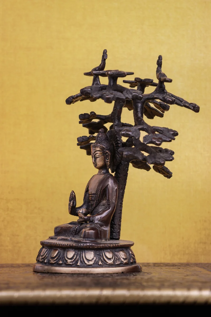6″ Meditating Buddha Under Bodhi Tree | Handcrafted Brass | Antique Brown Finish