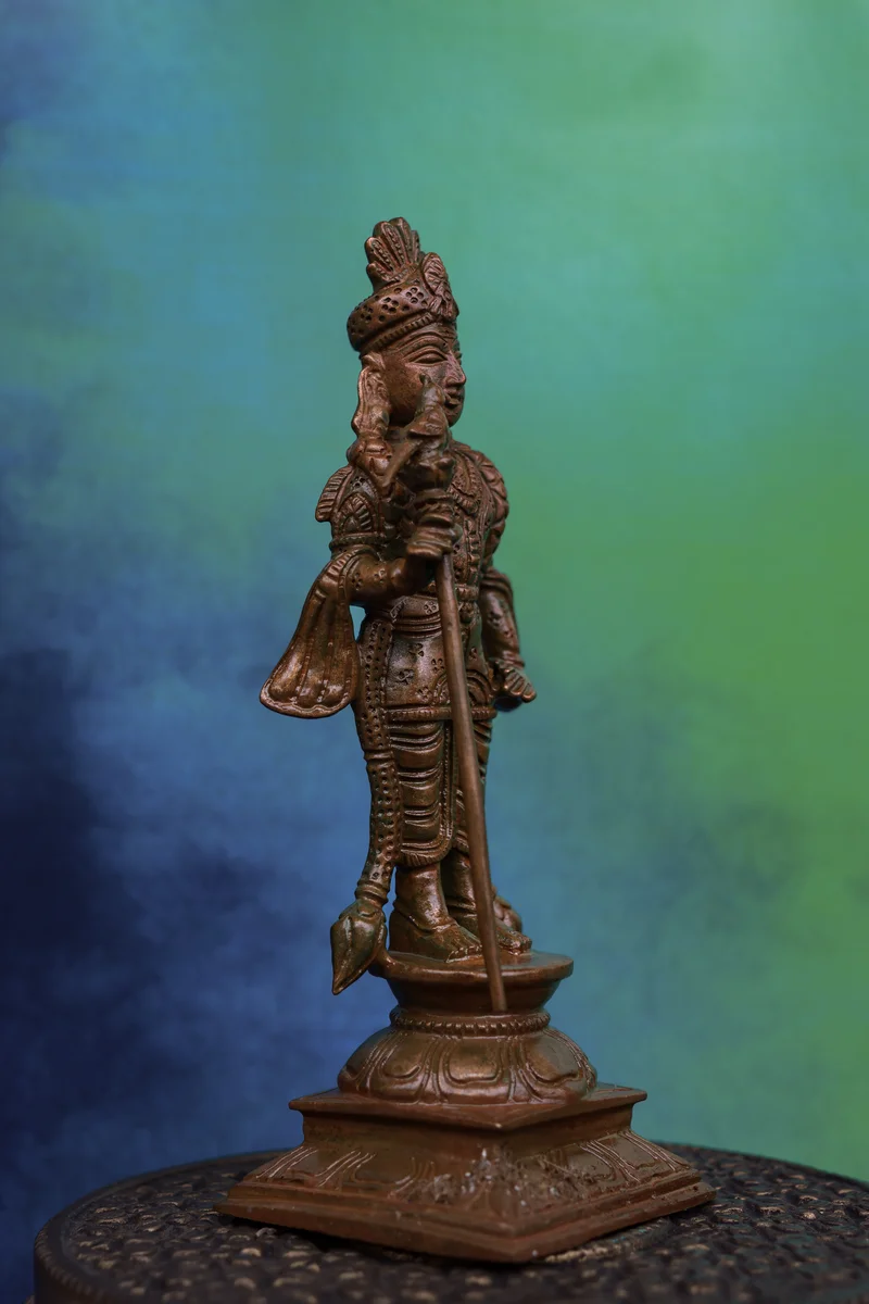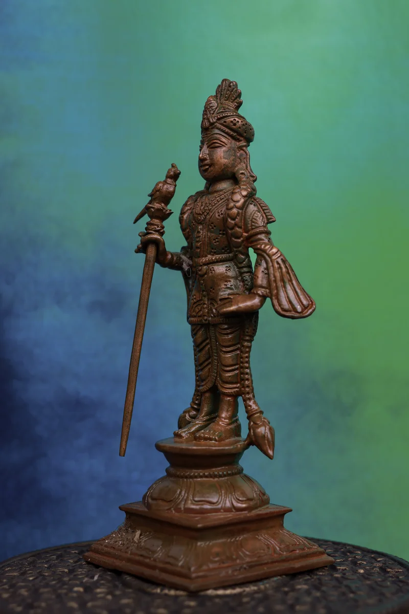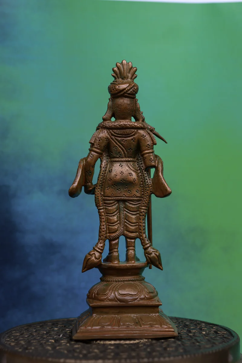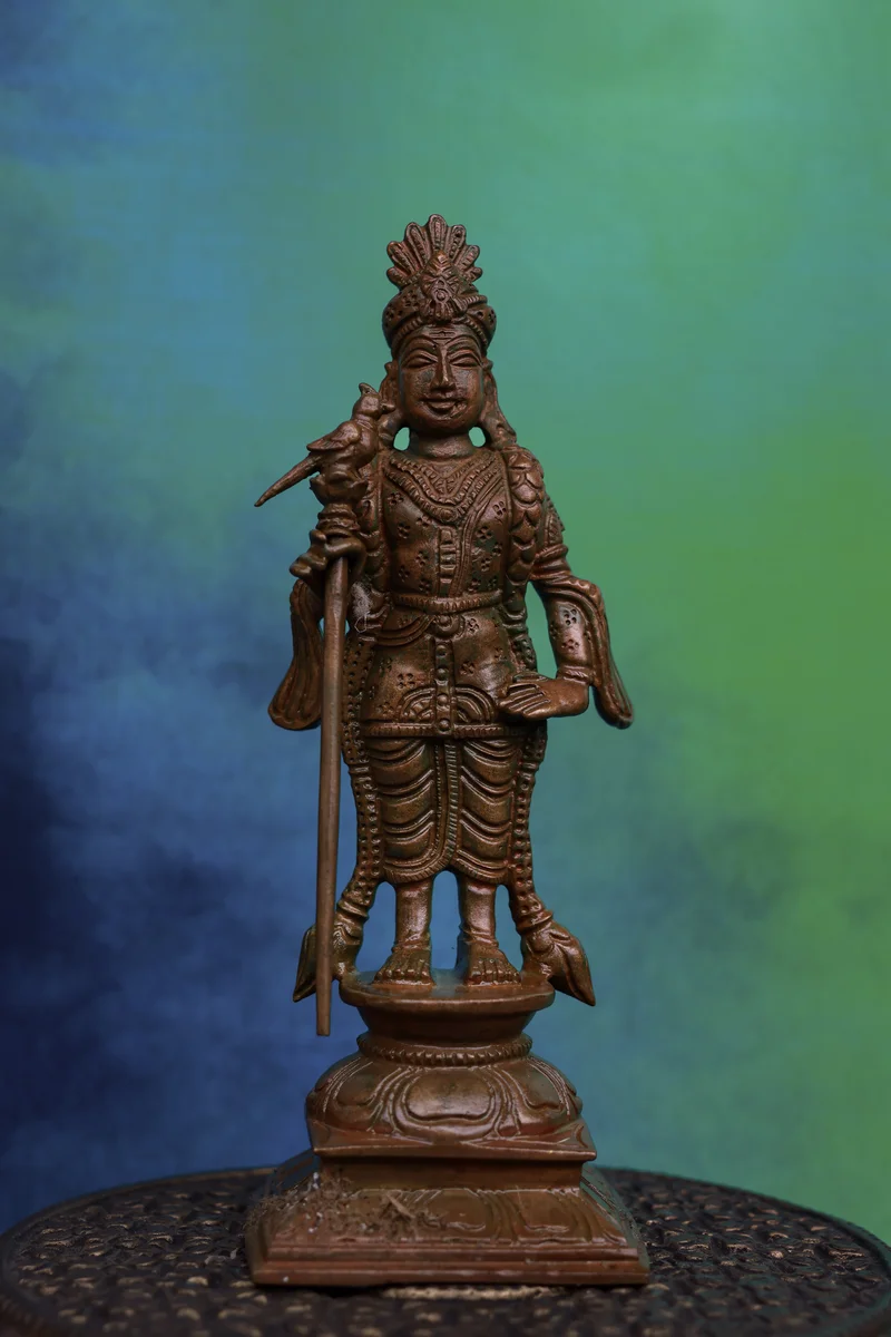 6″ Raja Alangara Murugan Idol | Handcrafted Panchaloha | Wood Patina