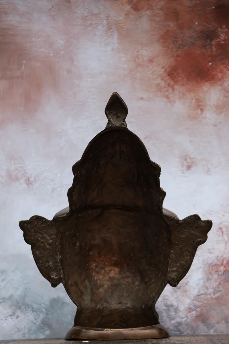 9″ Shankar Mask (Tabletop) | Handcrafted Brass | Antique Brown Finish