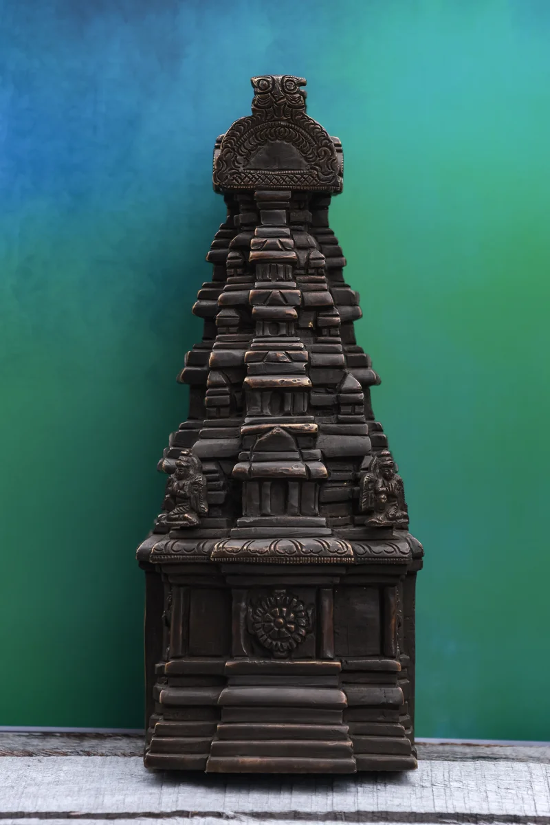 9″ Temple Gopuram Sculpture | Handcrafted Brass | Antique Brown Finish