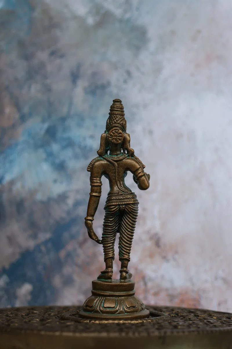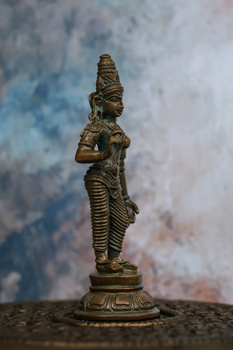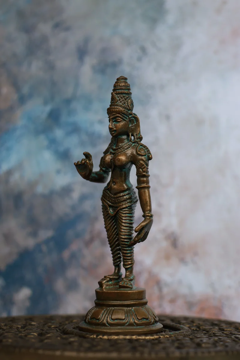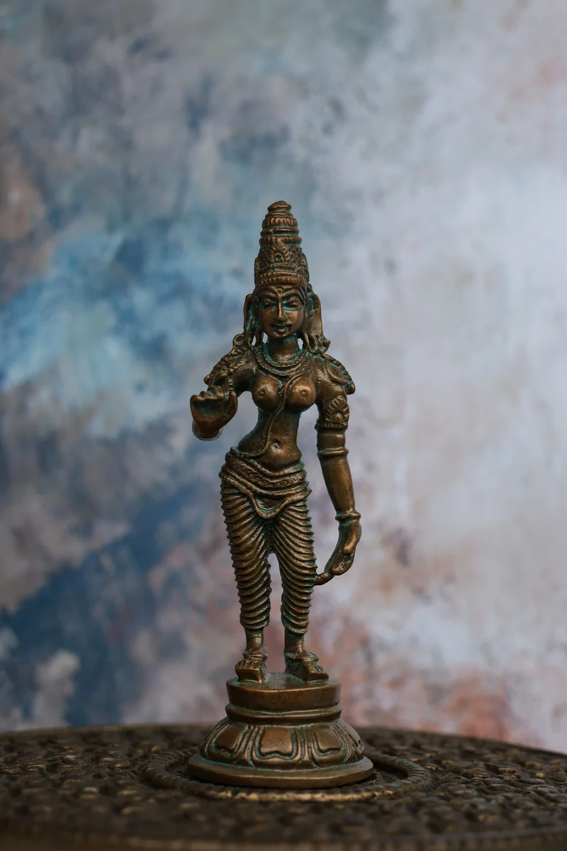 4″ Parvathi Devi Idol | Handcrafted Panchaloha | Green Patina