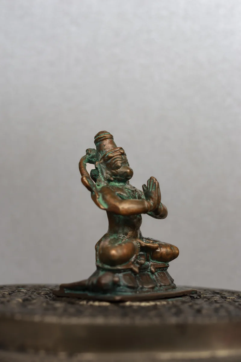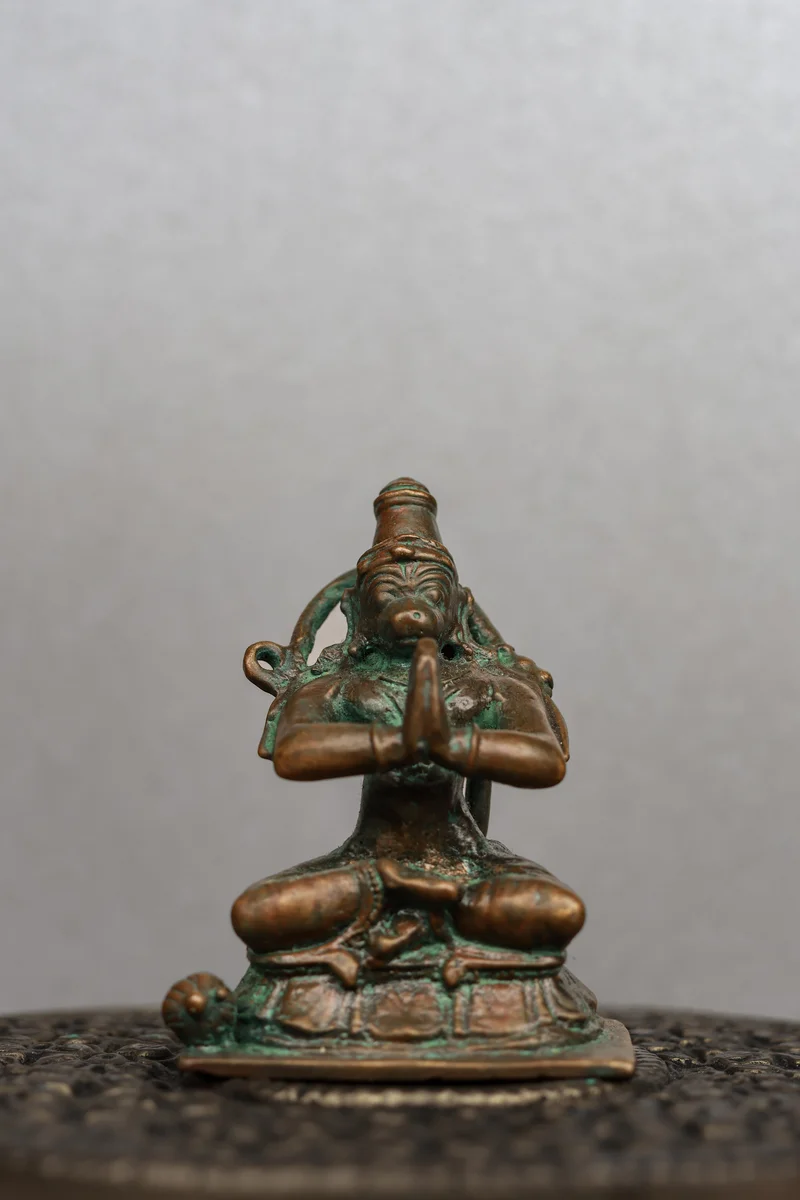 2.5″ Sitting Hanuman in Anjali Mudra | Handcrafted Panchaloha | Green Patina