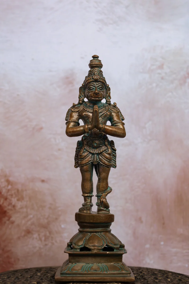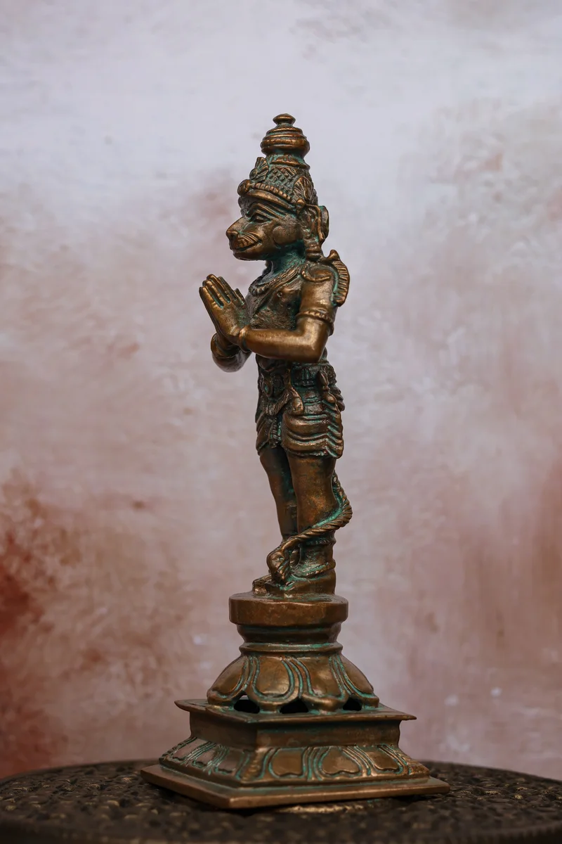 5.5″ Standing Hanuman in Anjali Mudra | Handcrafted Panchaloha | Green Patina